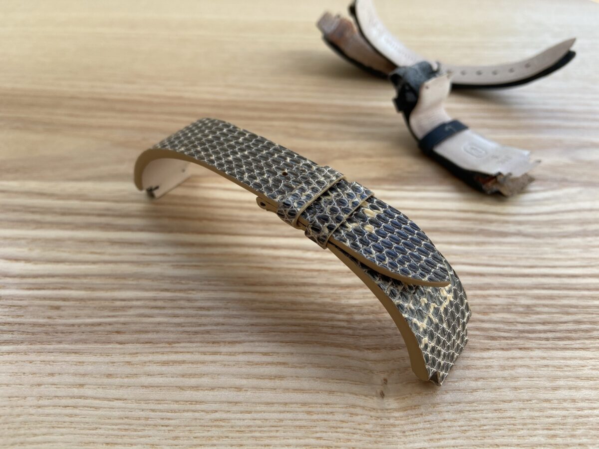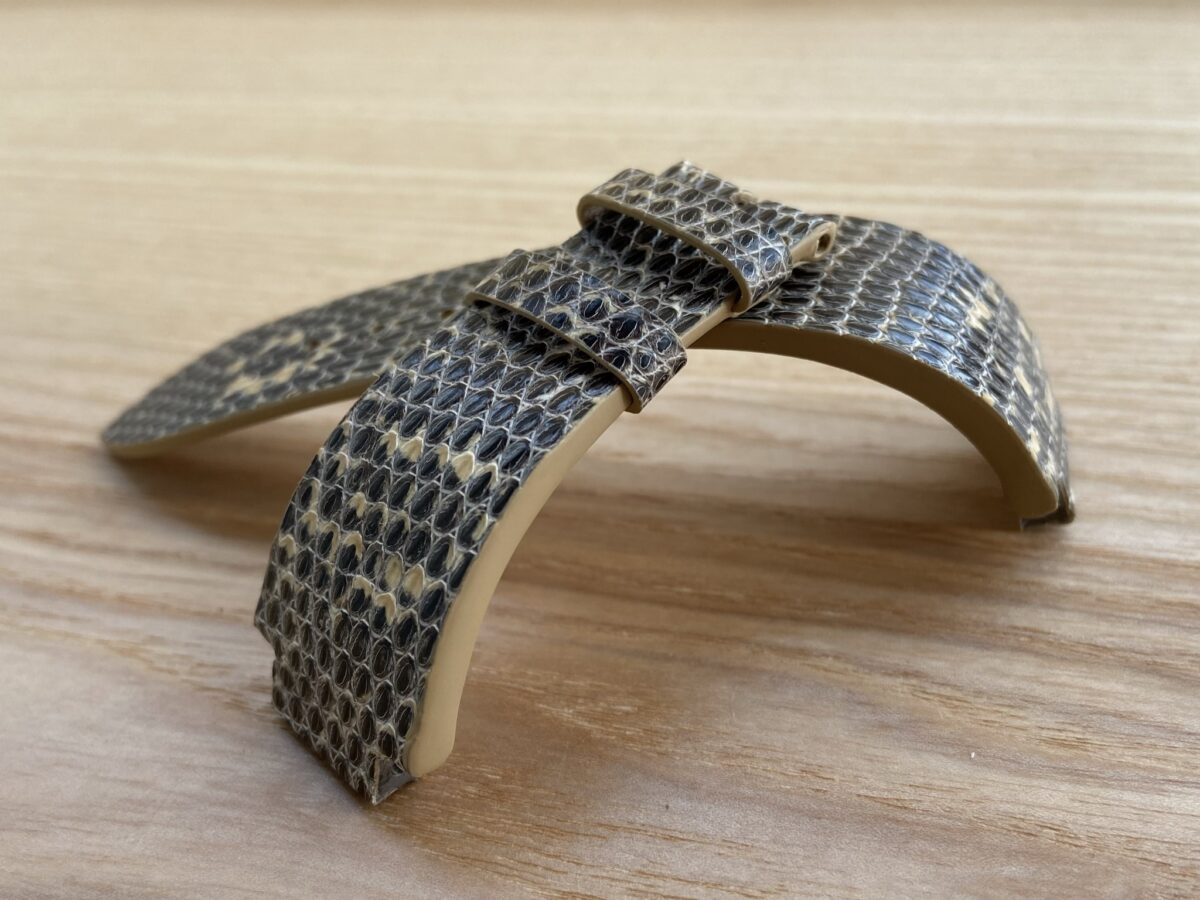 Ремешок к часам Harry Winston Large Chronograph. Выполнен из кожи ящерицы Тегу. Подклад из гипоаллергенной водостойкой кожи Alsavel от Tannerie Degermann (Франция).