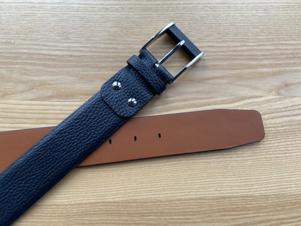 Ремень из матовой кожи черного цвета изготовлен в лучших традициях ручной работы. Ширина: 40 мм. Этот элегантный ремень, незаменимый аксессуар мужской одежды украшен латунной пряжкой с покрытием. Каждый ремень из телячьей, оленьей или крокодиловой кожи выделяется из многих серийных изделий машинного производства, которые вы видите сегодня повсюду.