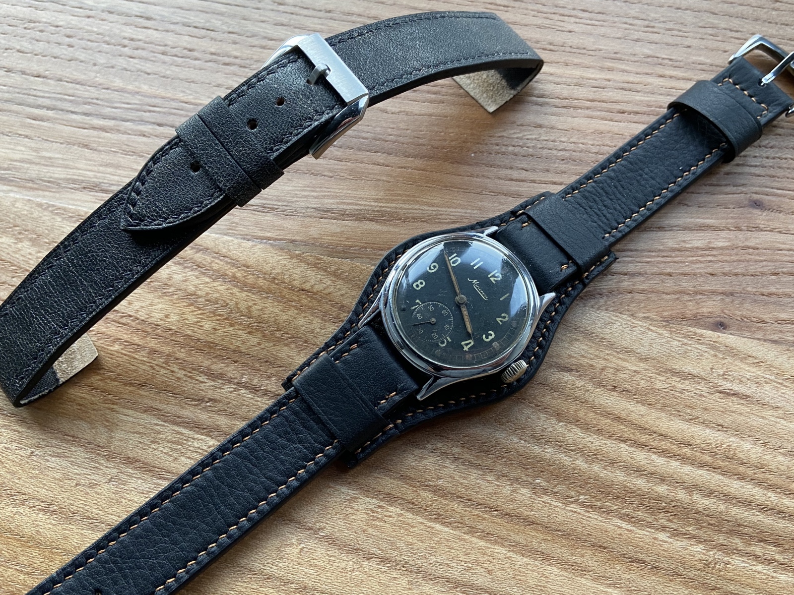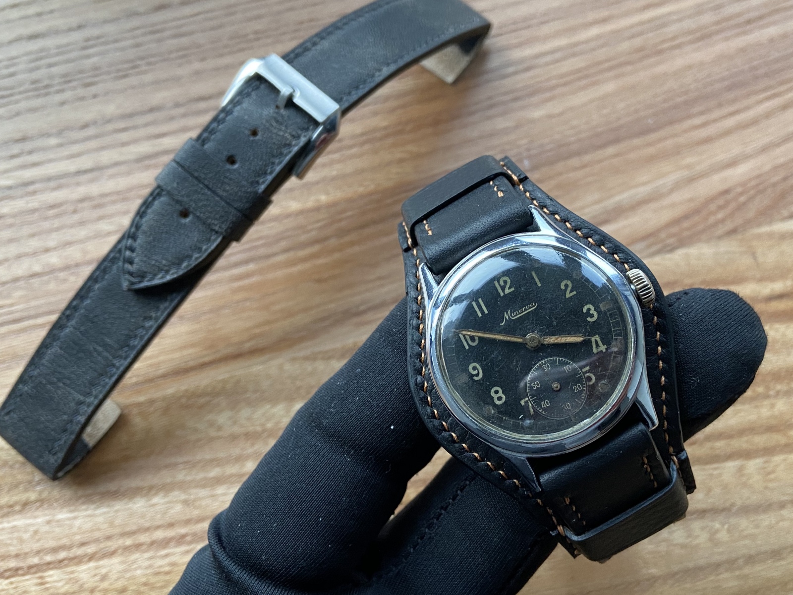 Я испытываю особые ощущения когда в работу попадают часы с историей. В этот раз комплект ремешков для военных часов #Minerva периода Второй Мировой войны. Minerva – легендарная швейцарская часовая мануфактура, известная, в частности, производством хронографов и сегодня является частью Montblanc в Richemont group.