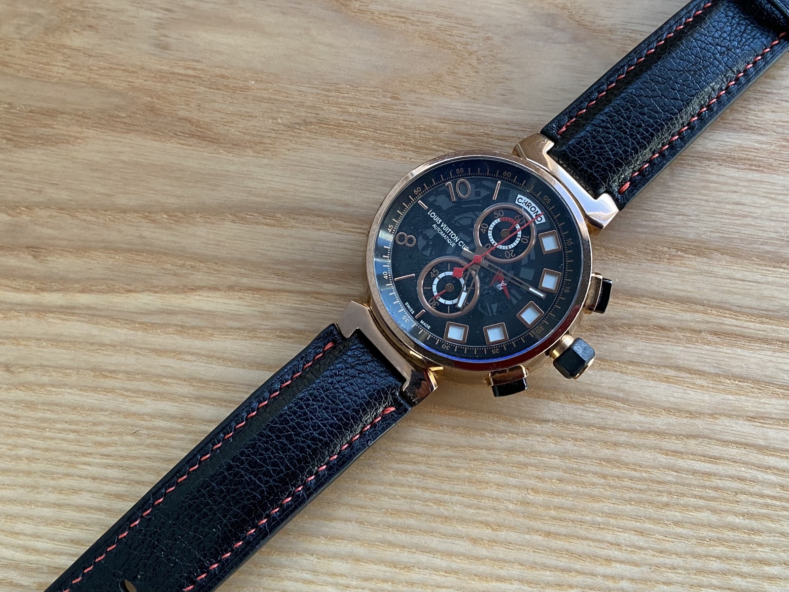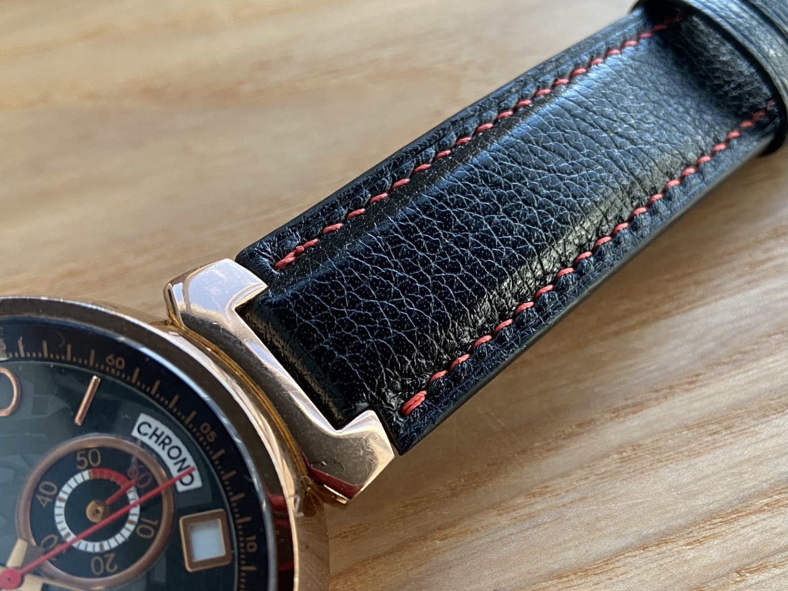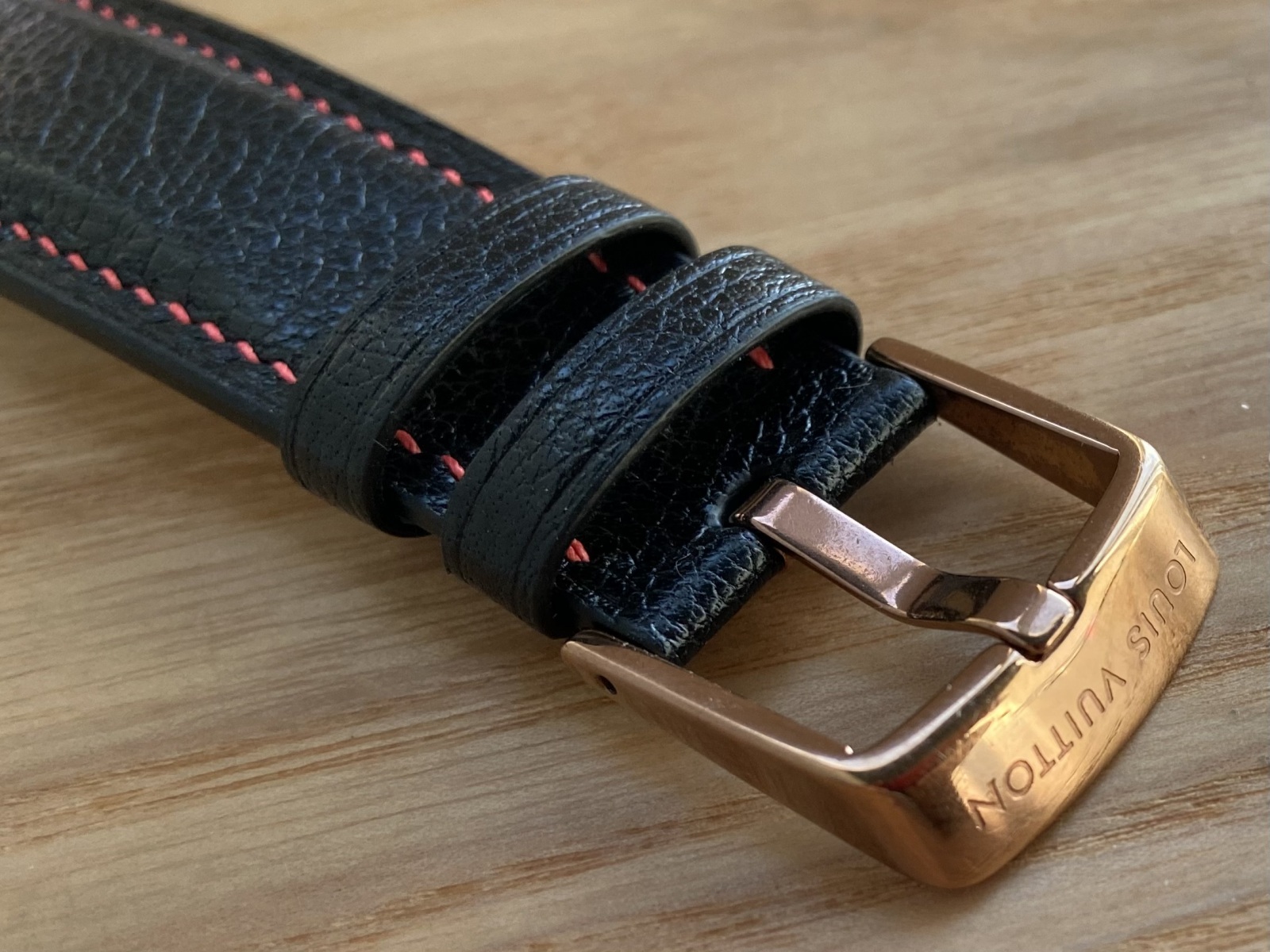 Ремешок для женских часов Louis Vuitton Ремешок для наручных женских часов Louis Vuitton выполнен из кожи Buffalo INCAS. Подклад из гипоаллергенной влагоустойчивой кожи Conceria La Bretagna art. Idro Cansas. Ручное шитьё седельным швом льняной вощеной нитью от MeiSi Europe.