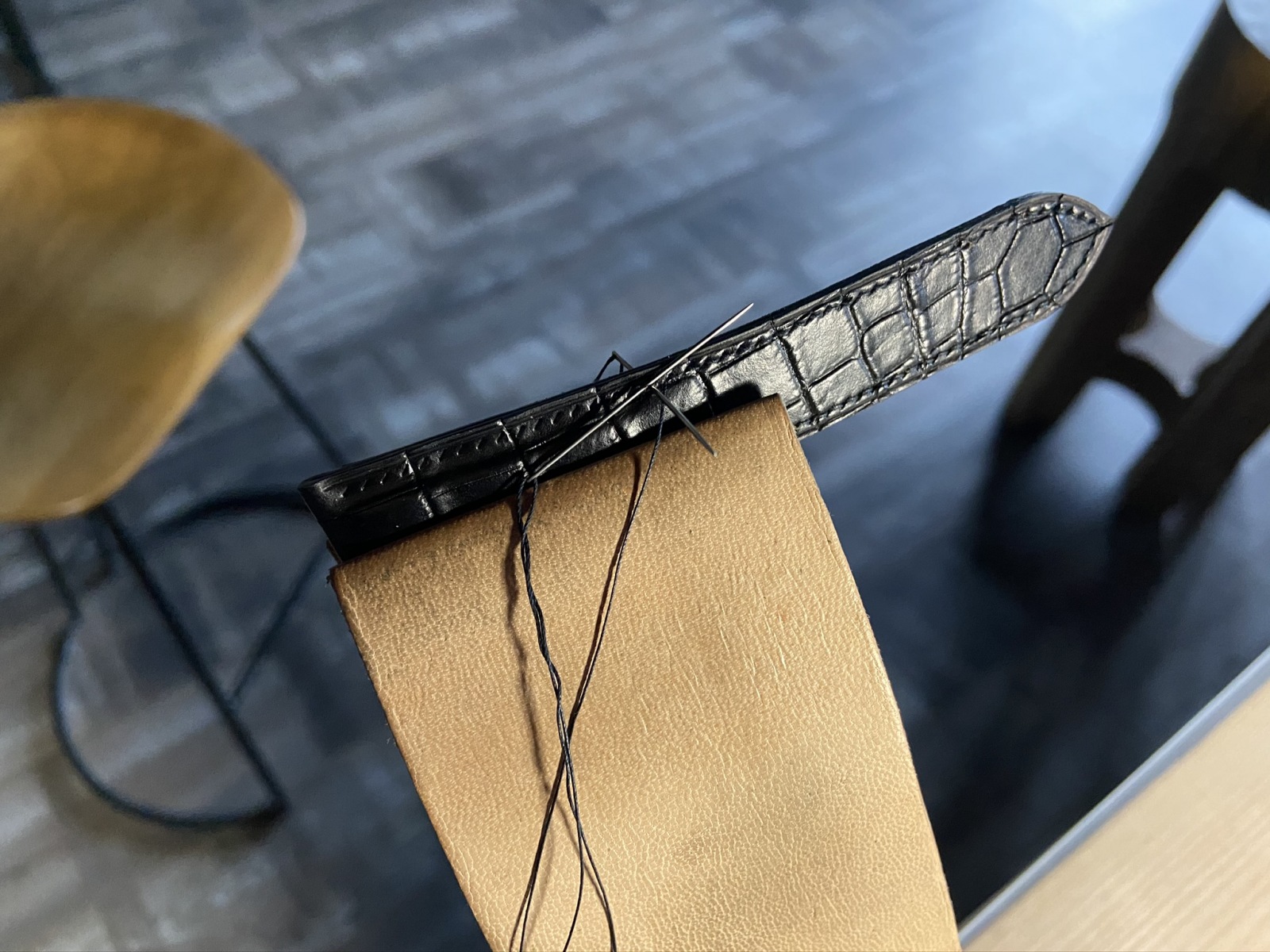Заказной ремешок для часов Zenith Watches из кожи крокодила. Подклад Alsavel lining. Только ручная работа. Шитьё вручную седельным швом льняной вощеной нитью MeiSi Ua