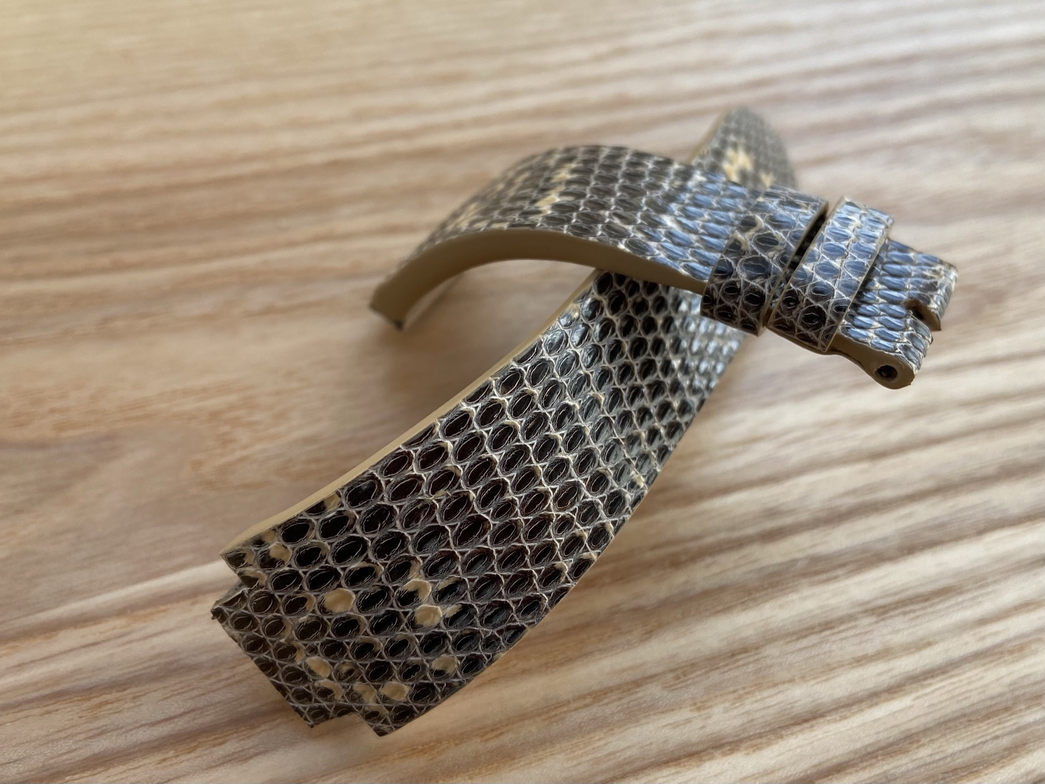 Ремешок к часам Harry Winston Large Chronograph. Выполнен из кожи ящерицы Тегу. Подклад из гипоаллергенной водостойкой кожи Alsavel от Tannerie Degermann (Франция).