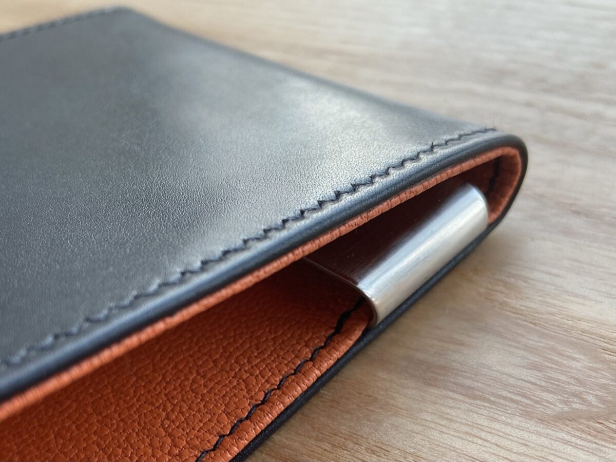 Зажим для денег с интеграцией фурнитуры заказчика. Телёнок (Италия). Внутри кожа козы Alran (Франция). Шитье вручную седельным швом льняной вощёной нитью MeiSi Europe.