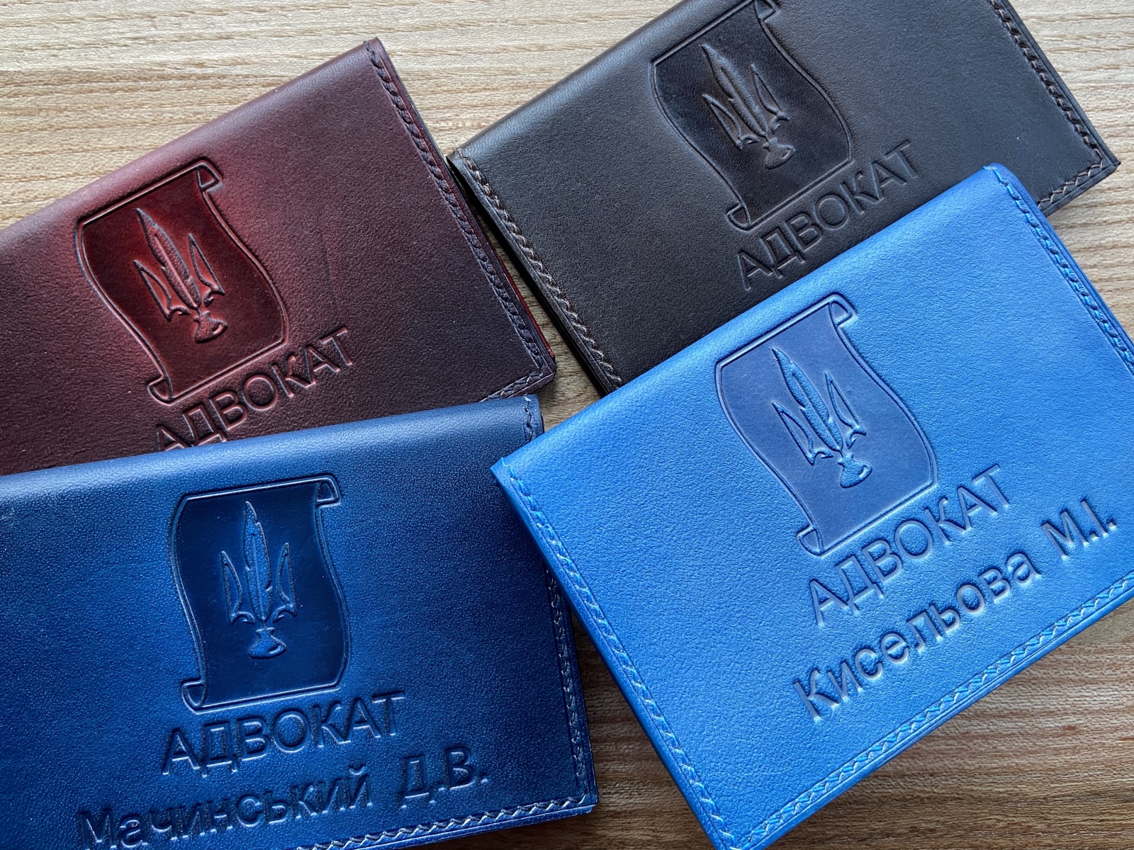 Обложки для удостоверений адвокатов из кожи растительного дубления. Авторская покраска. Персонализация (Фамилия Имя). Шитье вручную льняной вощеной нитью от MeiSi Ua