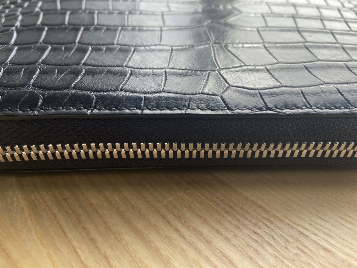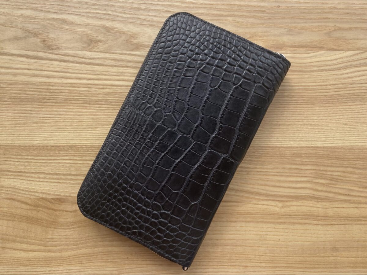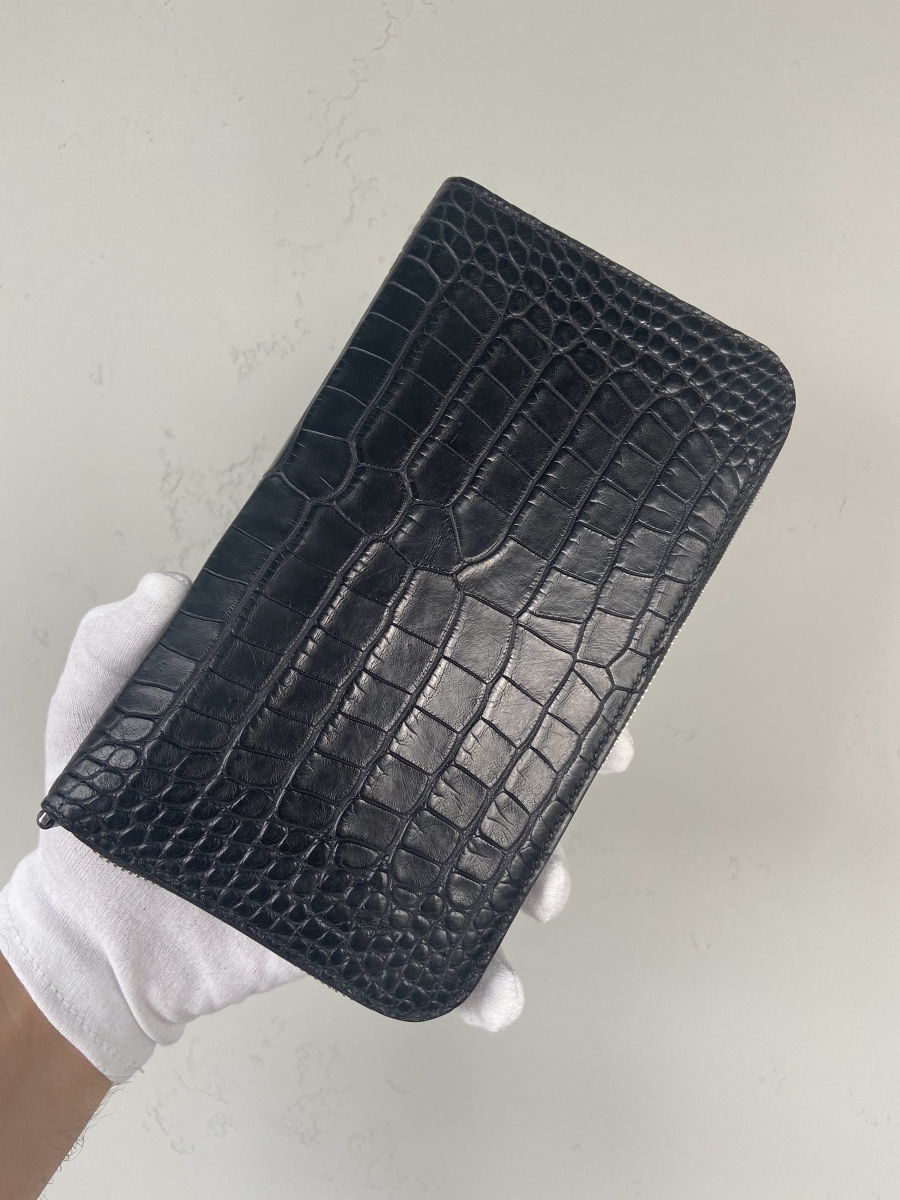 Органайзер ручной работы из кожи крокодила с круговой застежкой-молнией. 16 отделов для кредитных карт. Карман на молнии для монет/жетонов и два просторных отделения для банкнот/телефона. Размер органайзера обусловлен его назначением. Удобен для хранения проездных документов.