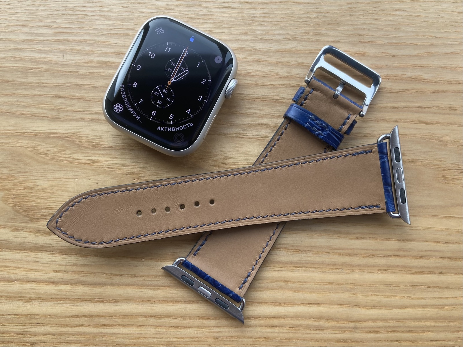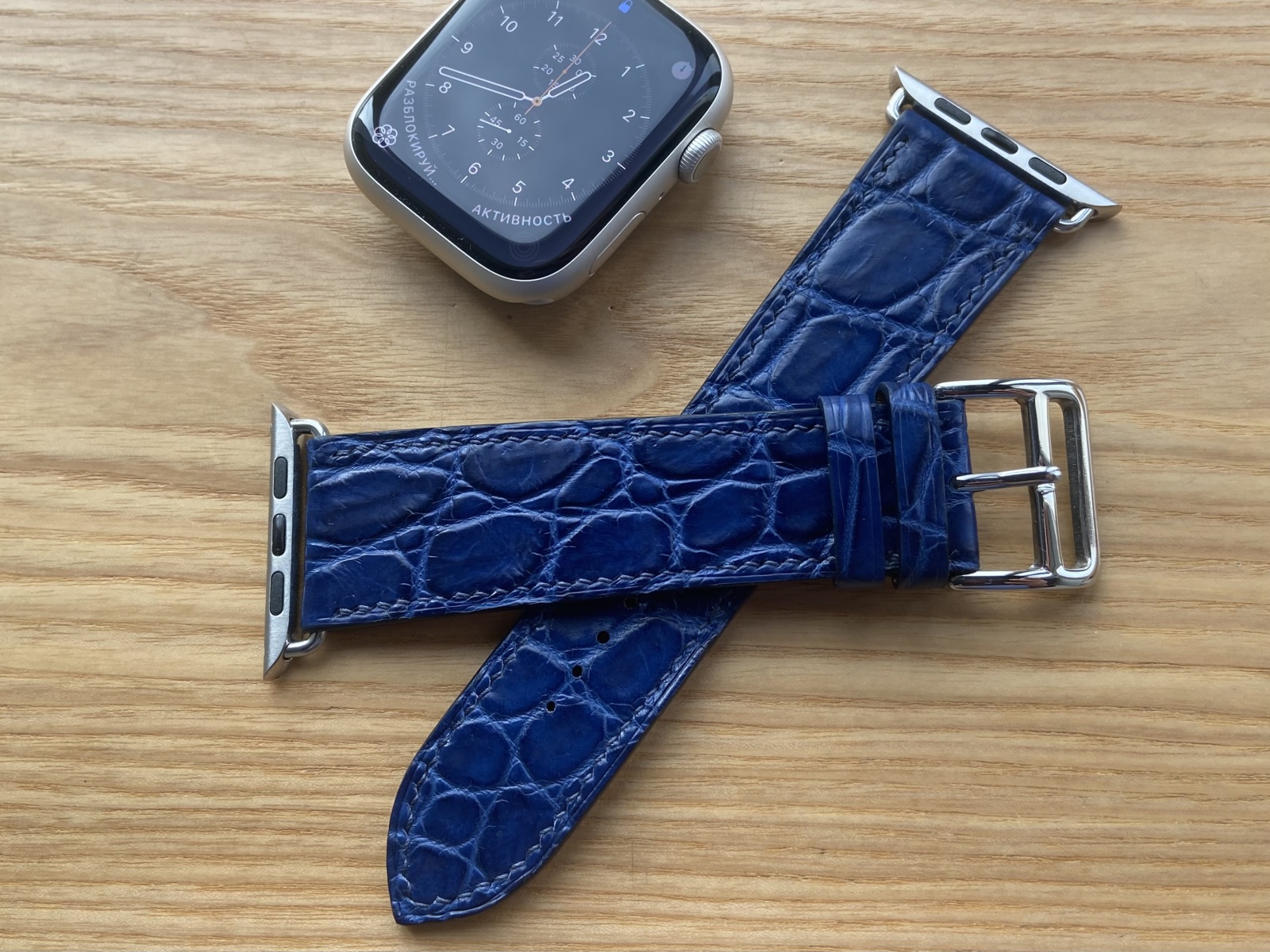 Ремешок для Apple Watch Ремешок для Apple Watch 42/44/45mm выполнен из высококачественной кожи крокодила. Подложка из гипоаллергенной влагостойкой кожи. Ручное шитье льняной вощеной нитью MeiSi linen super fine.