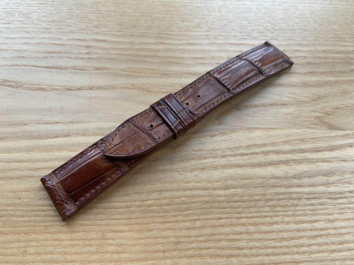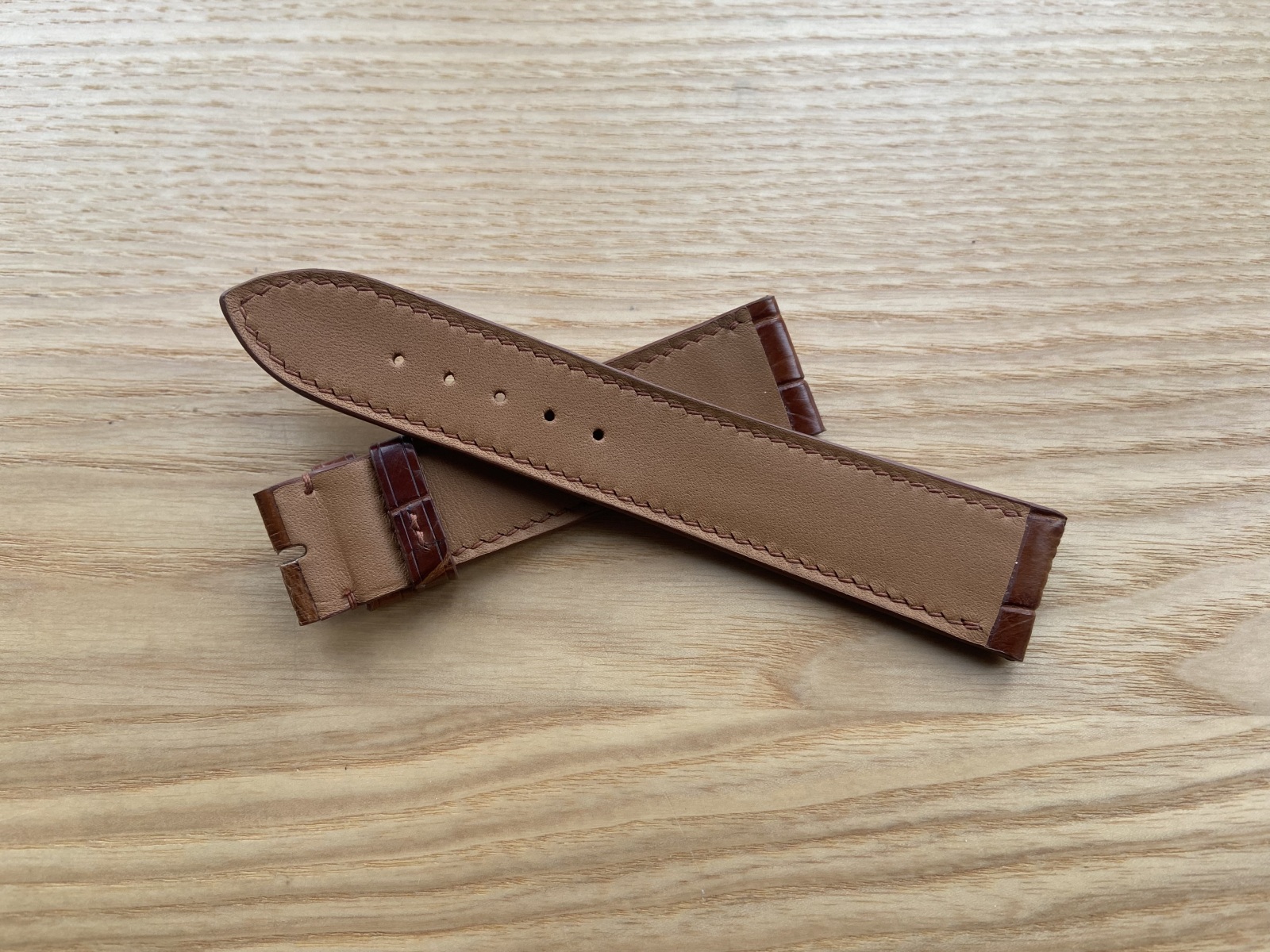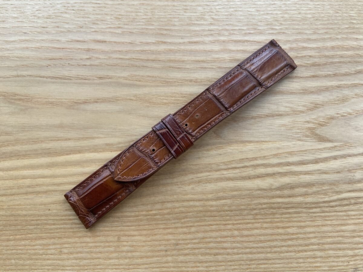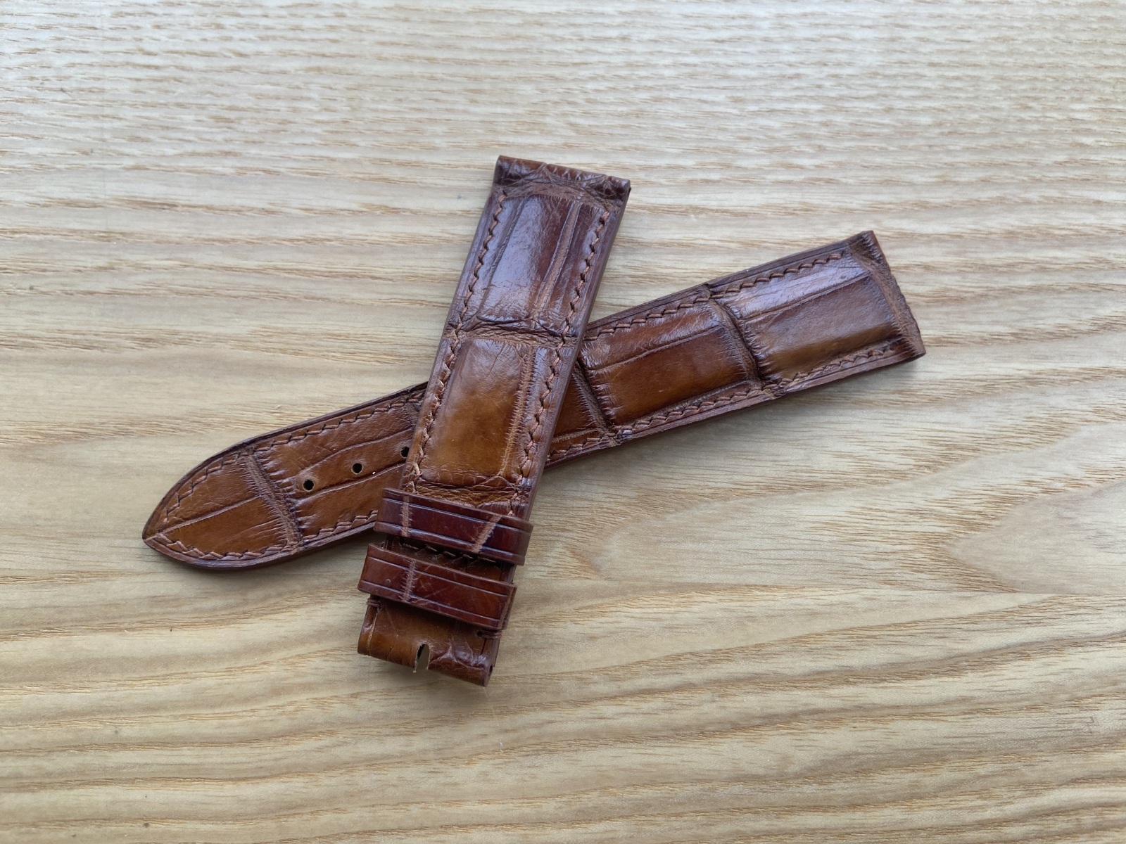 Ремінець для годинника з алігатора Ремінець для годинника виконаний з високоякісної шкіри алігатора. Підкладка з гіпоалергенної вологостійкої шкіри. Розмір 115/75 мм, 20/18 мм. Ручне шиття лляною ниткою MeiSi.
