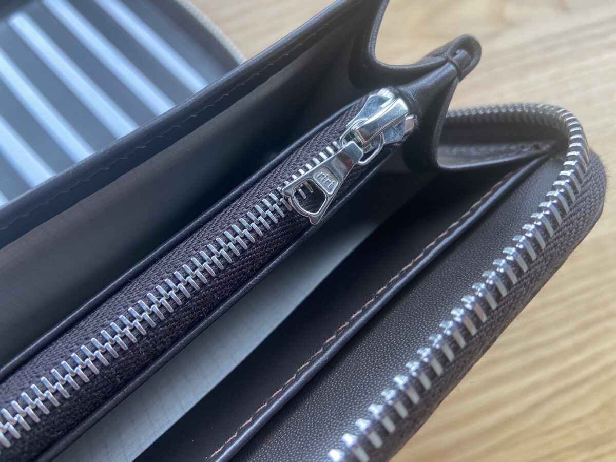 Органайзер виготовлений вручну з високоякісної шкіри теляти. Застібка-блискавка RiRi (Швейцарія), забезпечує плавний, “масляний” хід замка, а міцні сталеві зуби та натуральна котонова тасьма надають виробу вишуканого вигляду.