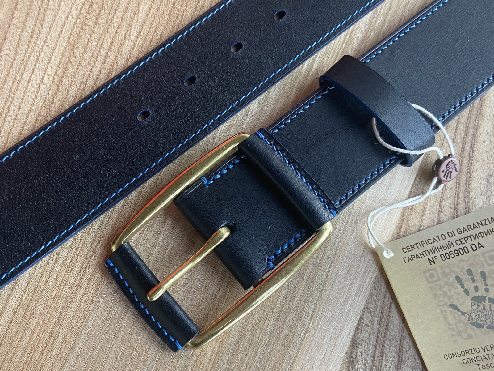 Ремень к джинсам выполнен из кожи растительного дубления Volpi Concerie (Италия). Литая латунная пряжка Solid brass. Шитьё вручную седельным швом, льняной вощеной нитью MeiSi Ua.