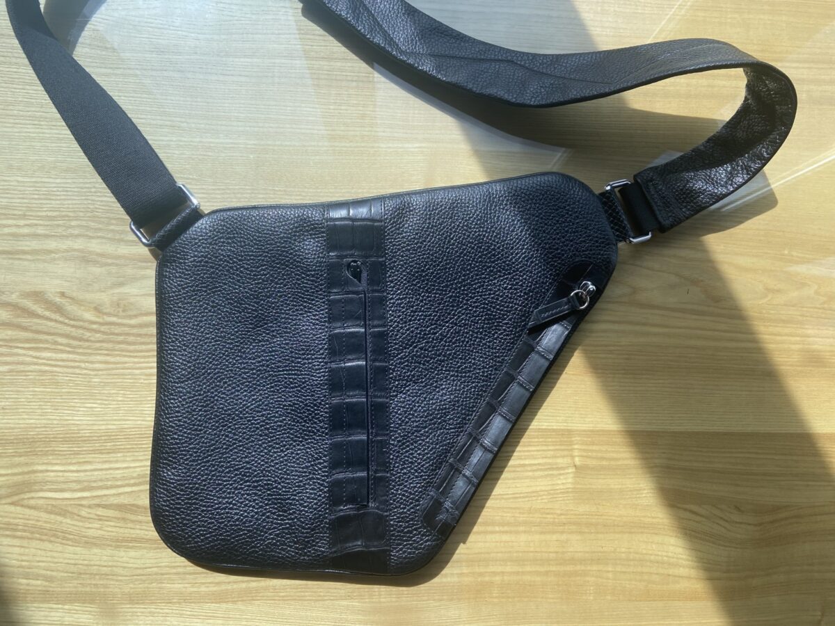 Ергономічний плечовий ремінь, який повторює анатомію тіла, забезпечує максимальний комфорт під час тривалого носіння сумки. Ця сумка-слінг поєднує в собі практичність, стиль і розкіш, роблячи її незамінним аксесуаром для сучасного чоловіка, який цінує комфорт і функціональність у повсякденному житті.