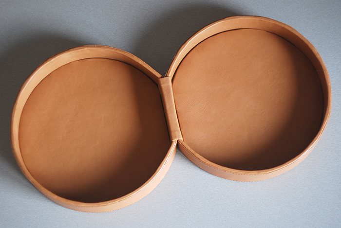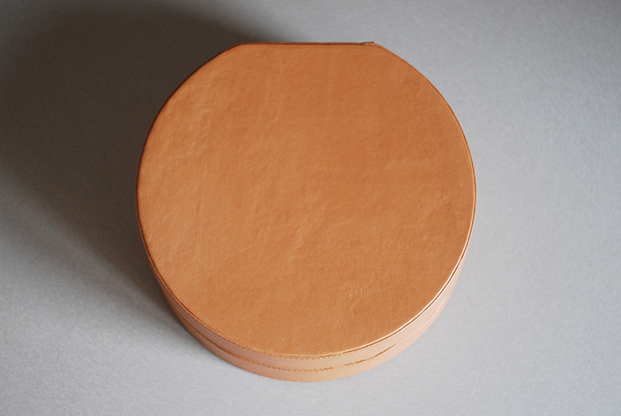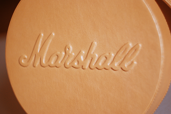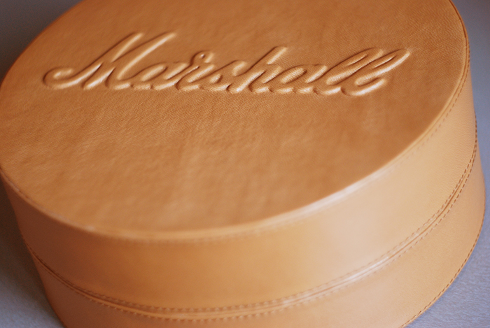 Коробка для хранения и транспортировки наушников Marshall изготовлен из картона и высококачественной овечьей кожи. По периметру всей коробки в торцах встроены миниатюрные неодимовые магниты, что дало возможность получить изделие без застежек и замков. Внутренние плоскости сделаны с применением мягкой поролоновой подложки. Декоративная строчка по периметру деталей в тон материала. Наружный диаметр 180 мм, высота в закрытом состоянии 80 мм.