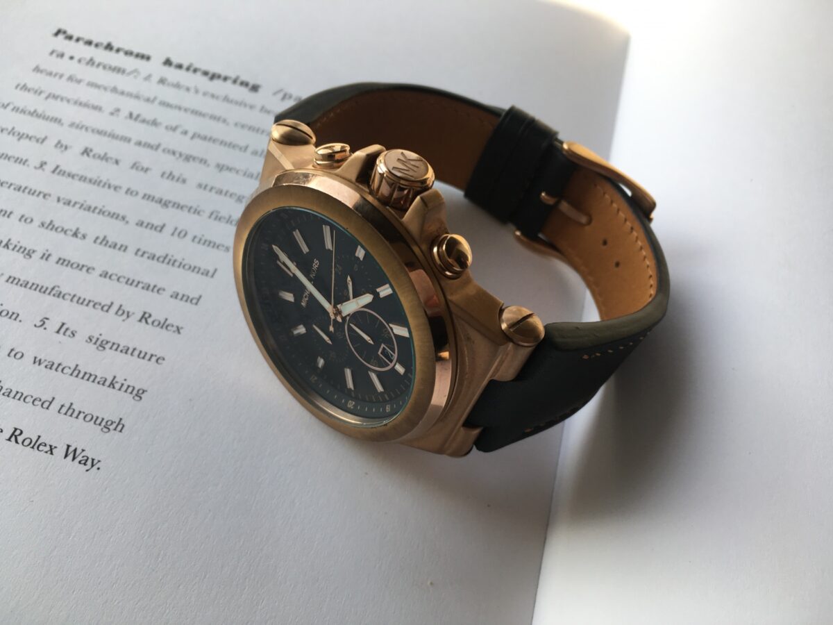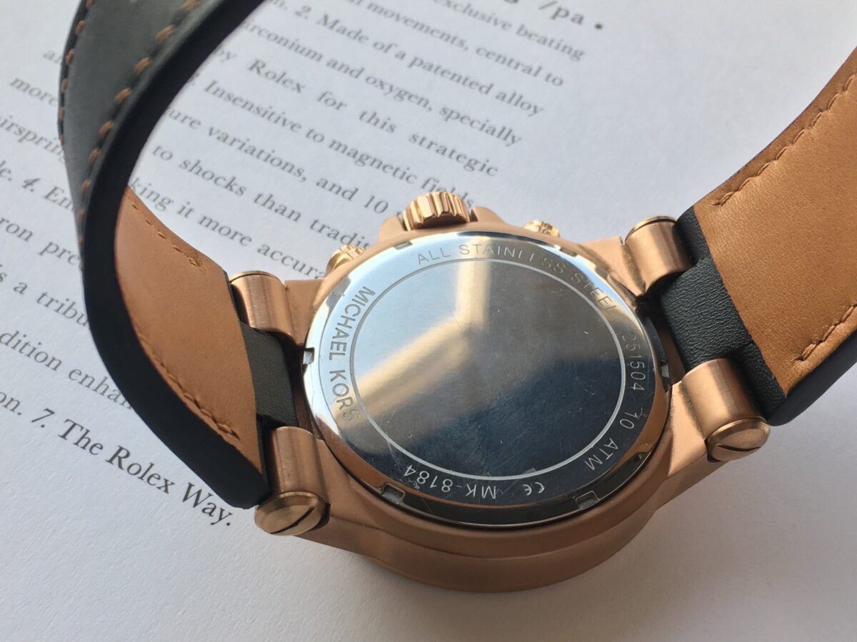 Заказной ремешок для часов Michael Kors MK-8148 выполнен из кожи телёнка (Италия). Ручное шитьё седельным швом льняной вощеной нитью от MeiSi Ua.