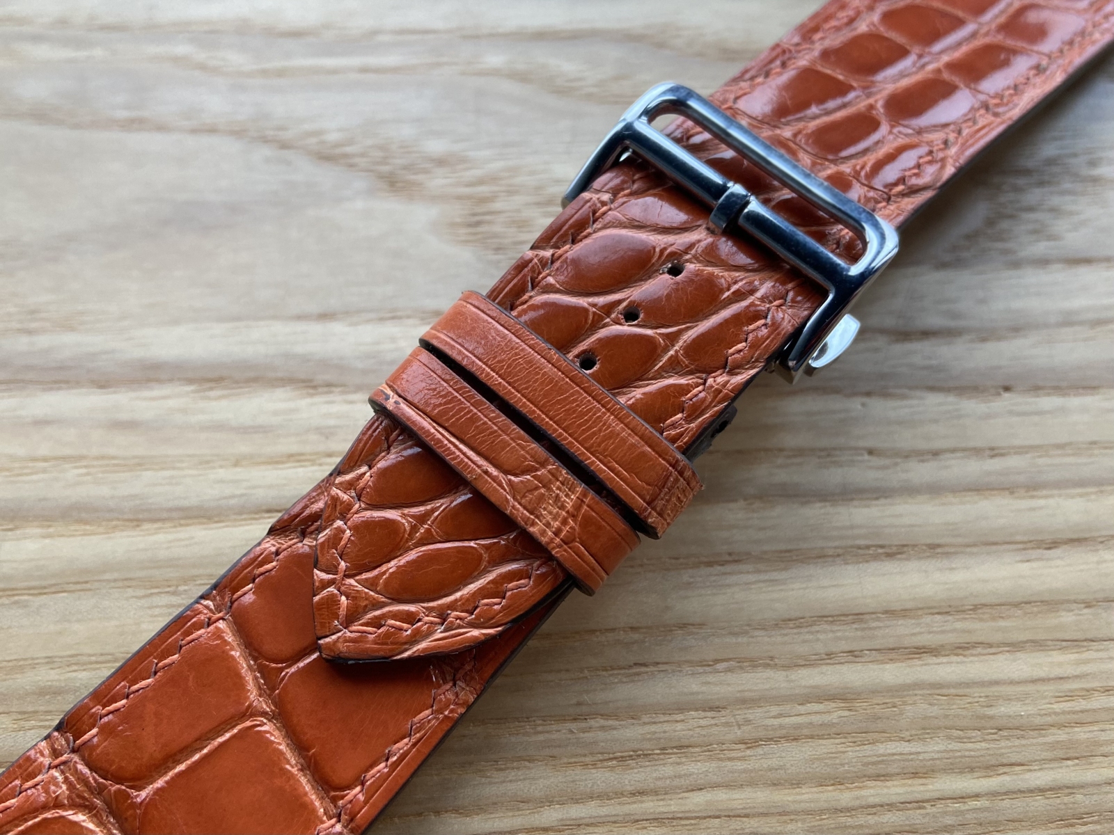 Ремінець виготовлено вручну зі шкіри крокодила з виразною природною фактурою, що робить кожен екземпляр унікальним. Підкладка — гіпоалергенна вологостійка шкіра, комфортна для щоденного носіння та стійка до контакту зі шкірою руки.