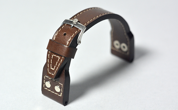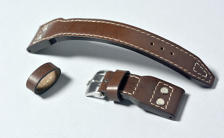 Сделан на заказ из кожи растительного дубления. Толщина в месте крепления к часам 6 мм.